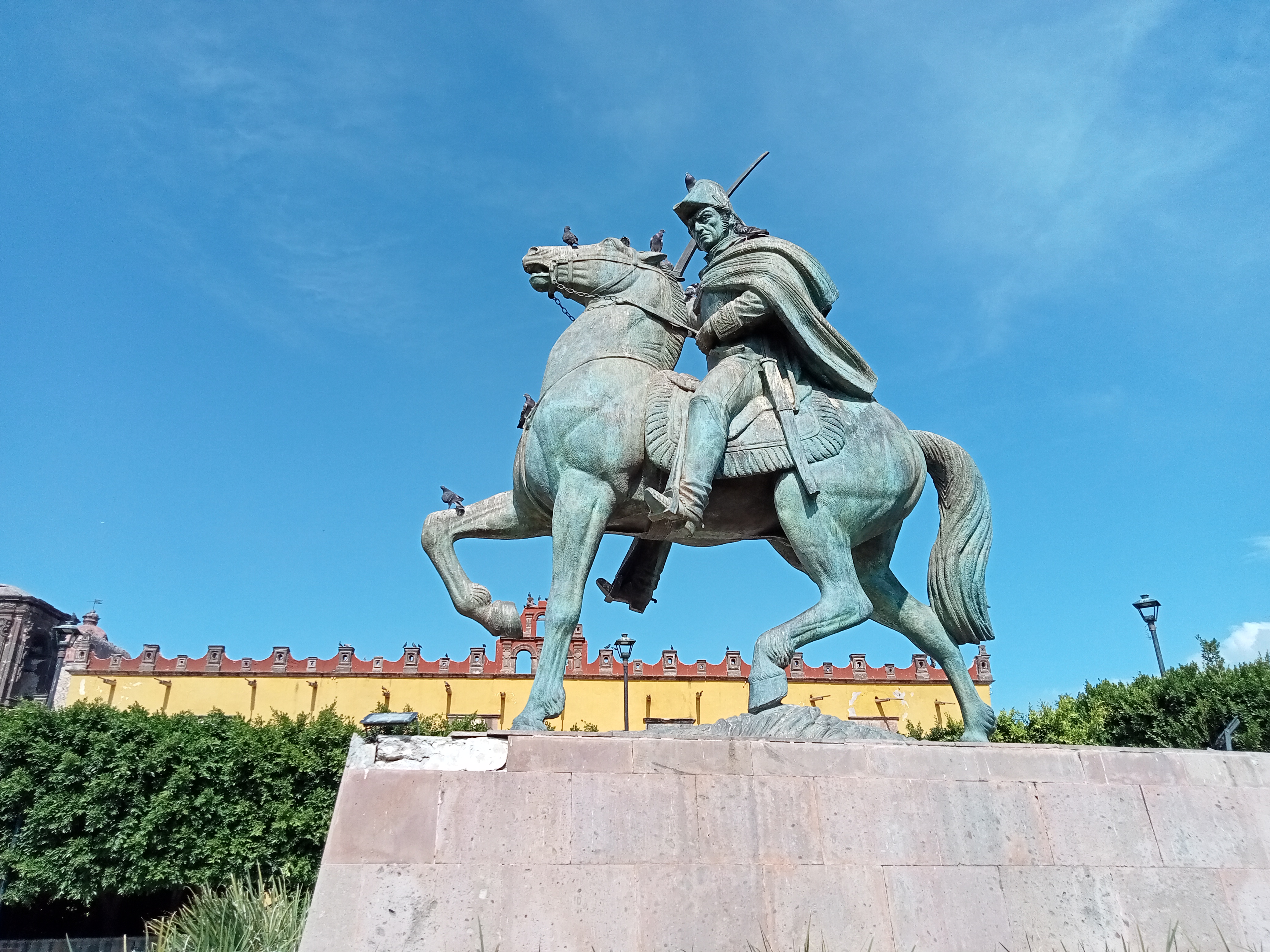 En el centro histórico de San Miguel de Allende los visitantes recorren varios sitios de interés. Uno de estos la Plaza Cívica, también llamada Plaza de Armas y Plaza de la Soledad. Se trata de un bello espacio jardinado con bancas para descansar a la sombra de la arboleda donde la escultura del héroe independentista Ignacio de Allende, conocida como “El caballo”. Una de las piezas que rinden homenaje al principalísimo insurgente en el inicio del movimiento de la independencia nacional.