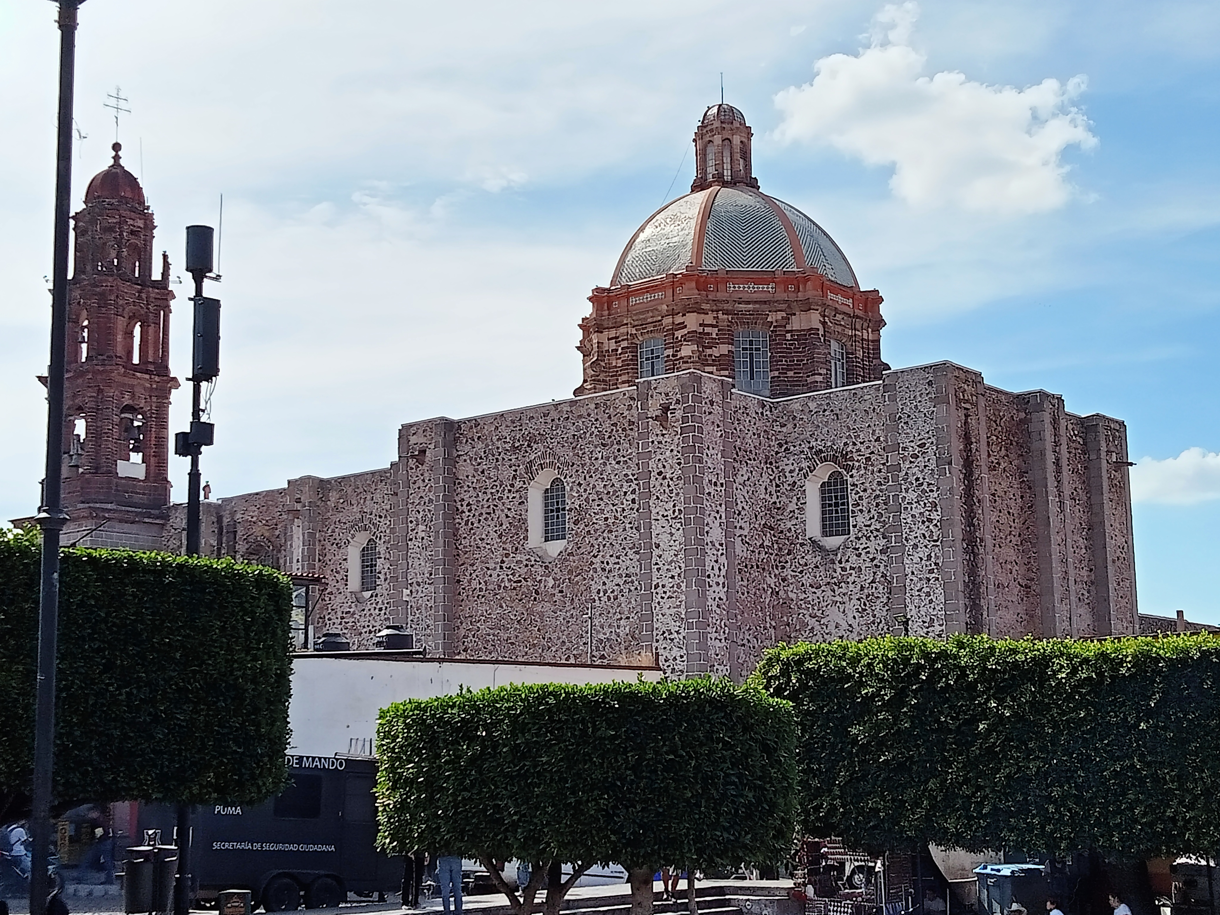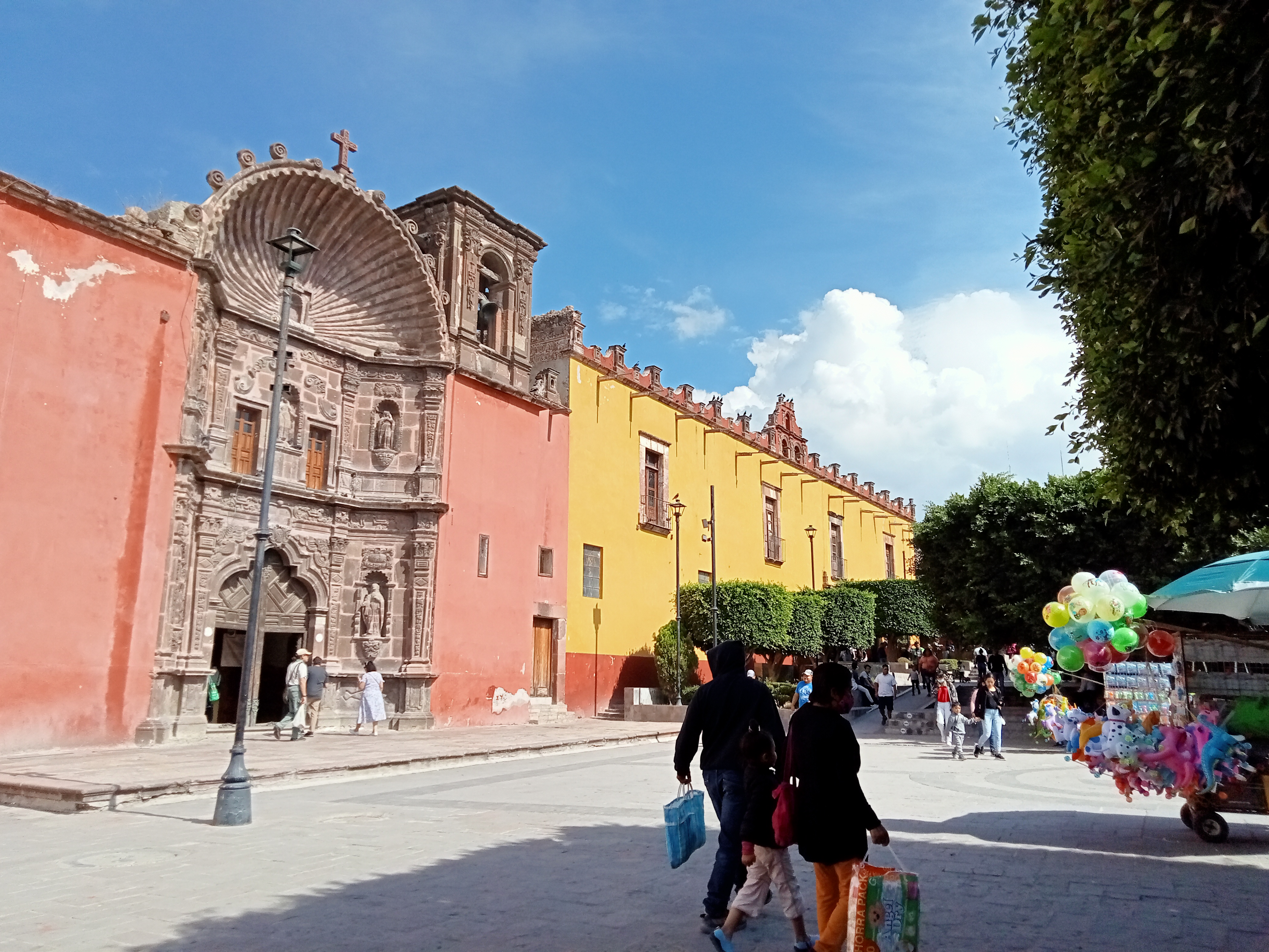 Dos importantes edificios del patrimonio arquitectónico sanmiguelense: Templo de La Soledad y Ex Colegio de San Francisco de Sales. Ubicados en la Plaza Cívica de San Miguel de Allende, Patrimonio de la Humanidad.