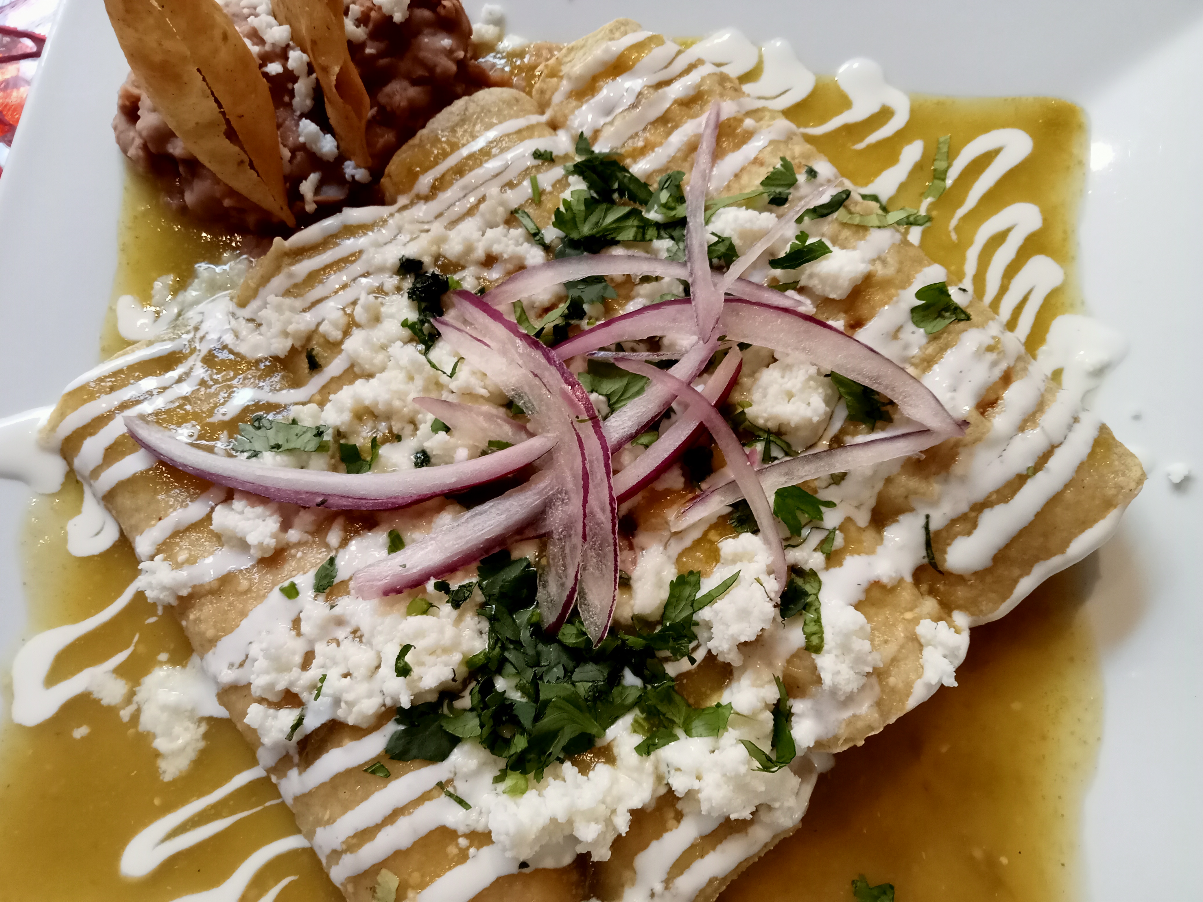 Las enchiladas verdes o rojas son uno de los platillos de la cocina tradicional mexicana patrimonio inmaterial de la humanidad que más gusta a los sanmiguelenses y se puede comer en casi todos los restaurantes de comida mexicana y en el mercado local. Principalmente en el Restaurante Quinta Loreto, ubicado a un costado del Mercado de Artesanías de San Miguel de Allende, Guanajuato.